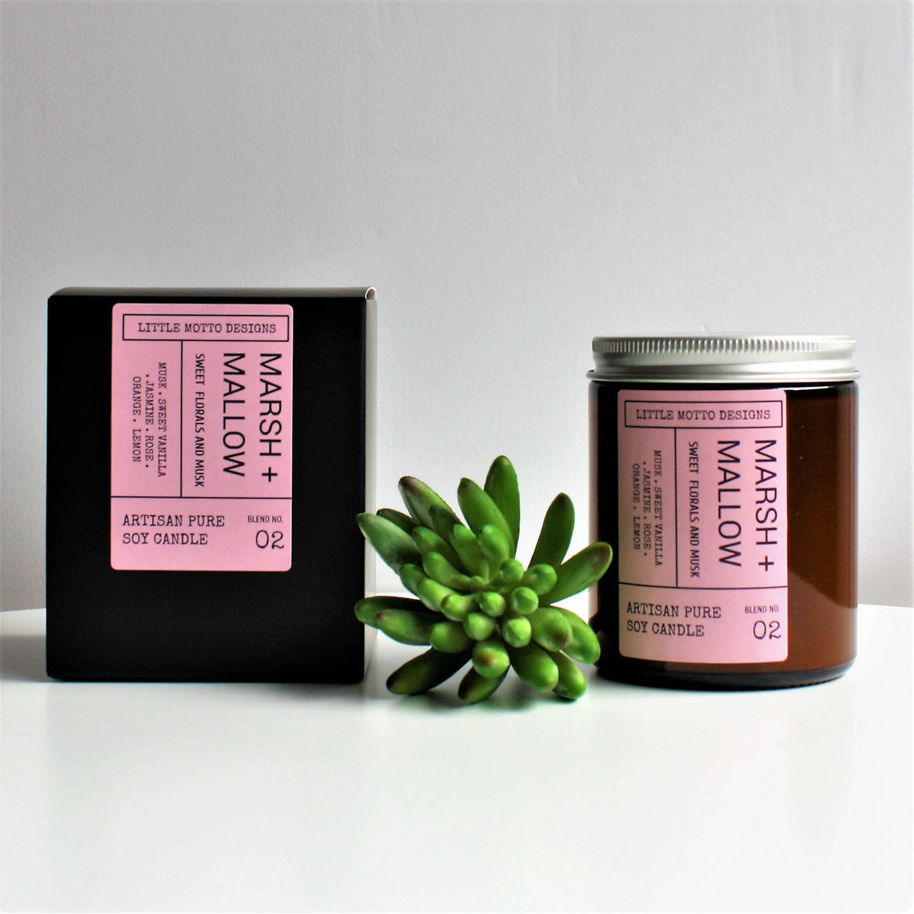 Artisan Soy Candle | MARSHMALLOW | Amber Glass Jar | Everyday Brights | Fragranced Candle