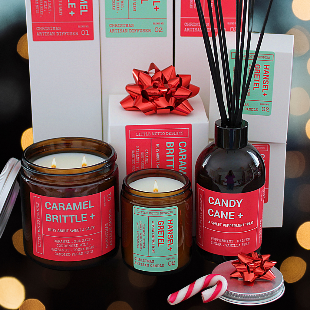 CHRISTMAS BLEND 01. CARAMEL BRITTLE - If you are nuts about all things sweet and salty then this is the fragrance for you. A rich blend of salted caramel and candied nuts results in a mouth watering scent that smells good enough to eat.