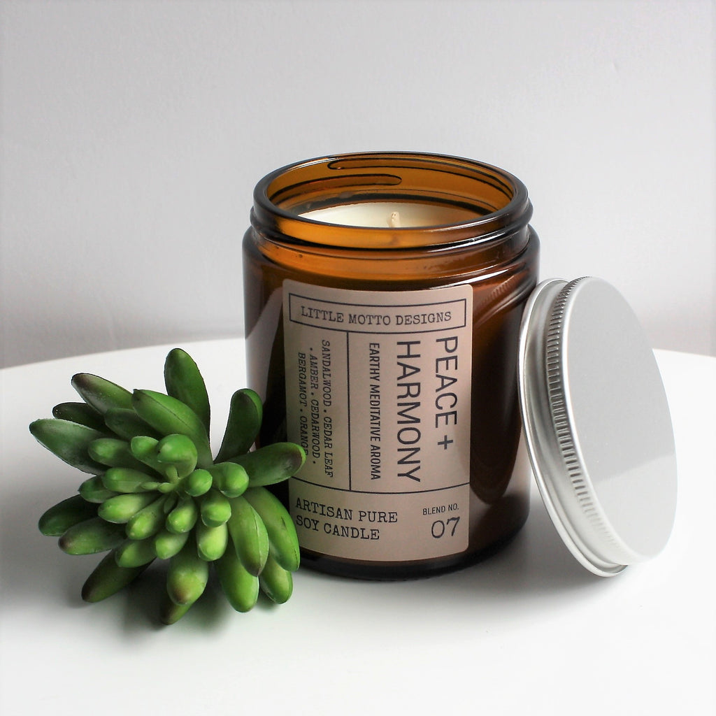 1 x Amber Glass Pure Soy Candle Jar - Peace & Harmony (or fragrance of your choice)