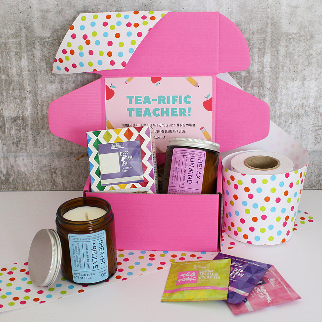 TEA-RIFIC TEACHER Mini Custom Hamper | PERSONALISED | Candle & Tea Gift Pack | Thank You | Christmas | Kris Kringle