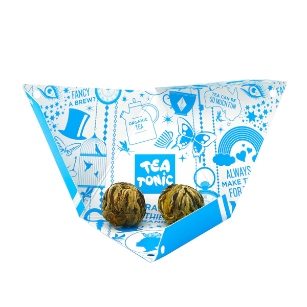 Tea Tonic's artisan crafted Tea Balls are made of the highest grade special green tea of fresh spring crops and natural herb flowers. Like a burst of jasmine fireworks! Sweet and aromatic with a summery taste of rockmelon.